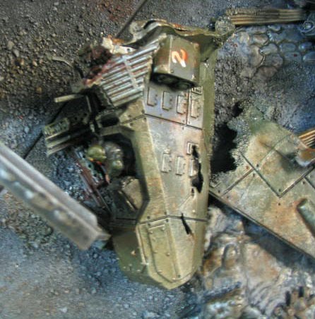 The machine does suffer d3 S4 hits if it moves into difficult terrain, but so what? On average that’s two hits, and each one needs a SIX to cause a wound. It takes d6 S10 hits if it moves into a building or impassable terrain. Ouch. But at least it’s not automatically destroyed.